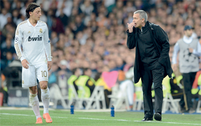 مورينيو يوجّه لاعبه أوزيل خلال مجريات اللقاء أمام البايرن. غي