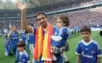راؤول يصطحب ابنته ماريا وبقية أبنائه خلال مباراة شالكه مع هرتا برلين. غيتي