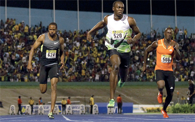 وتقدم بولت في السباق الذي أعيد مرتين بسبب خطأ في الانطلاق على مواطنيه مايكل فراتر (10.00 ث) وليرون كلارك (10.03 ث). وكان أفضل رقم لهذا العام بحوزة الجامايكي الاخر يوهان بلايك وقدره 9.90 ث، سجله في أبريل الماضي في كينغستون.