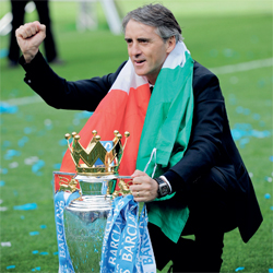 مانشيني يحتفل بالفوز بلقب الدوري الإنجليزي. غيتي