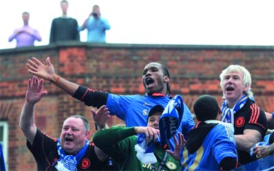 دروغبا يحتفل في لندن بتحقيق أهم إنجاز في تاريخه. أ.ف.ب
