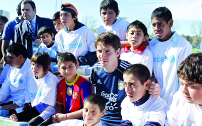 ميسي يتوسط أطفالاً في حملة لـ «اليونيسيف». إفي