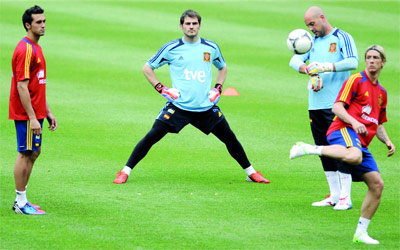 كاسياس يسعى إلى رفع كأس أمــــــــــــــــــــــــــــــــم أوروبا للمرة الثانية على التوالي. أ.ف.ب