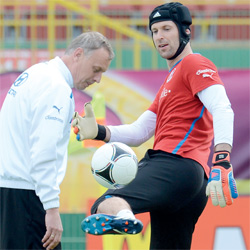 حارس التشيك بيتر تشيك أحرز أكبر بطولة أوروبية مع تشلسي. أ.ف.ب
