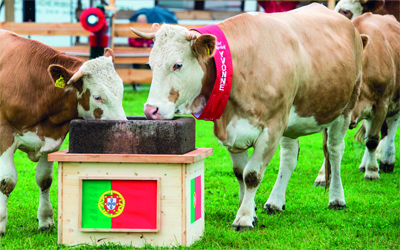 البقرة «إيفون» توجهت مباشرة إلى وعاء العلف «البرتغالي». أ.ف.ب
