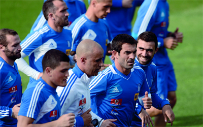نجوم المنتخب اليوناني أعدوا العدة لمواجهة التشيك. أ.ب