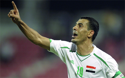 يونس محمود يقود هجوم المنتخب العراقي أمام عُمان. أ.ف.ب