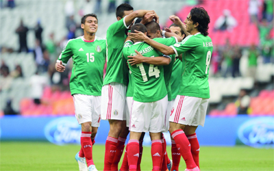 لاعبو المكسيك يحتفلون بالفوز. إفي