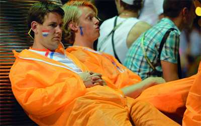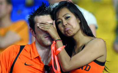 تلقى الجمهور الهولندي صدمة كبيرة بعد الخسارة التي مُني بها منتخب بلادهم أمام الألمان بهدفين مقابل هدف، ليلة أول من أمس، ليصبح منتخب الطواحين من أبرز المرشحين لتوديع البطولة، بعد أن كان اسمه متداولاً بقوة في الوصول إلى النهائي، واستغرب جمهور البرتقالي حال منتخب بلادهم وبدت آثار الألم والحسرة مرسومة على وجوههم، في الوقت الذي كان فيه الألمان يعيشون أحلى أيام حياتهم بفوزهم على الطواحين واقترابهم من التأهل.