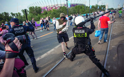 أكد المسؤولون في بولندا أول من أمس، ترحيل اثنين من المشجعين الروس من بولندا لمشاركتهما في المصادمات بين المشجعين البولنديين المتعصبين (هوليغانز) والشرطة. وألقت الشرطة القبض عليهما الخميس وأدانتهما بالمشاركة في هذه المصادمات التي صاحبت المباراة بين المنتخبين البولندي والروسي. وذكر المسؤولون أن المشجعين سيحرما أيضاً لمدة خمس سنوات من دخول دول منطقة الاتحاد الأوروبي.