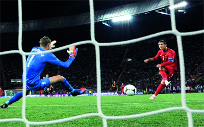 أهدى الجناح البرتغالي كريستيانو رونالدو هدفي الفوز لمنتخب بلاده على هولندا (2/1) أول من أمس، في الجولة الثالثة الأخيرة من مباريات المجموعة الثانية لبطولة يورو ،2012 إلى ابنه الذي يحتفل بعيد ميلاده الثاني. وقال رونالدو الذي سجل هدفي الفوز للمنتخب البرتغالي «إنني سعيد للغاية، اليوم ( أول من أمس) عيد ميلاد ابني وأهديه كلا الهدفين». وعقب انتهاء المباراة ذهب رونالدو إلى الكاميرات وأظهر قميصه التحتي، الذي كتب عليه «جونيو والدك يحبك، تهنئتي لك».