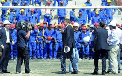 فالكه اجتمع مع العمال في الملاعب. أ.ف.ب