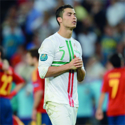 سيكون على نجم ريال مدريد الإسباني كريستيانو رونالدو الانتظار عامين آخرين من أجل أن يثبت أن باستطاعته قيادة منتخب بلاده البرتغال الى المجد العالمي او القاري، وذلك بعدما مني بخيبة «دولية» اخرى بخروج «سيليساو داس كويناش» من نصف نهائي كأس اوروبا 2012 على يد اسبانيا بطلة العالم وحاملة اللقب.