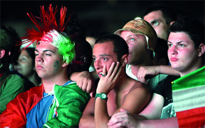 تبخر سريعاً الجو الصاخب الذي يشابه حفلات موسيقى الروك في ملعب «سيركوس ارينا» في روما، ليل أول من أمس، بعد خسارة ايطاليا امام إسبانيا (صفر - 4) في نهائي كأس اوروبا 2012 لكرة القدم، وتحول الى خروج سريع للمشجعين.
