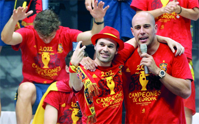 إنييستا قاد إسبانيا إلى 3 ألقاب كبرى. رويترز