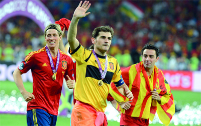 كاسياس وتشافي قادا إسبانيا إلى 3 ألقاب كبرى. أ.ف.ب