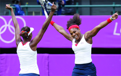 أحرزت الشقيقتان الأميركيتان فينوس وسيرينا ويليامز ثالث ميدالية ذهبية في منافسات زوجي التنس للسيدات في الأولمبياد أمس. وفازت فينوس وسيرينا على الثنائي التشيكي أندريا هلافاكوفا ولوسي هراديكا بمجموعتين متتاليتين بنتيجة 6/4 و6/.4 وكانت سيرينا حصدت ذهبية فردي التنس للسيدات، أول من أمس، عبر الفوز على الروسية ماريا شارابوفا في المباراة النهائية. وكانت فينوس وسيرينا فازتا بذهبية التنس في أولمبياد سيدني ،2000 وبكين .2008