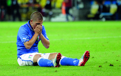 الإيطالي فيراتي يشعر بالخيبة بعد تضييع هدف محقق. أ.ف.ب