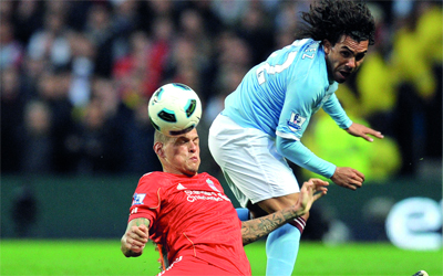 تيفيز في لقاء سابق لمانشستر سيتي وليفربول. أ.ف.ب