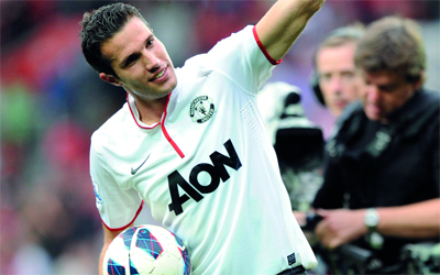 فان بيرسي سجل «هاتريك» لمانشستر يونايتد. أ.ف.ب