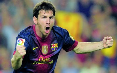 ميسي يحتفل بتسجيل هدفه الشخصي الثاني.