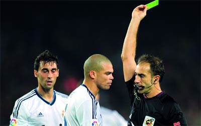 بيبي يتلقى بطاقة صفراء نتيجة أدائه العنيف.