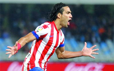 فالكاو سجل هدف الفوز لأتلتيكو مدريد في سوسييداد. أ.ف.ب