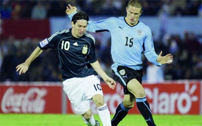 من لقاء سابق للأرجنتين والأوروغواي. أ.ف.ب