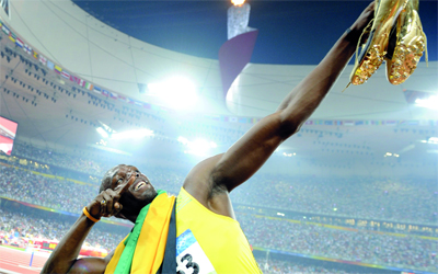 وحقق بولت ست ميداليات ذهبية في دورتي بكين 2008 ولندن 2012 في سباقات 100 متر و200 متر و4/100 متر، ويحمل الرقم القياسي العالمي في السباق الأقصر.