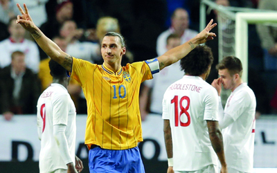 إبراهيموفيتش سجّل هدفاً «خيالياً» في مرمى إنجلترا. رويترز