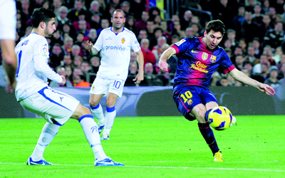 وسجل ميسي ثنائية قاد بها برشلونة إلى الفوز على ضيفه ريال سرقسطة 3/1، مساء أول من أمس، في المرحلة الـ12 من الدوري الإسباني لكرة القدم.