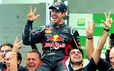 فيتيل أصغر سائق في التاريــــــــــــــــــــــــــــــــــخ يفوز بمونديال الفورمولا 1 ثلاث مرات. أ.ف.ب