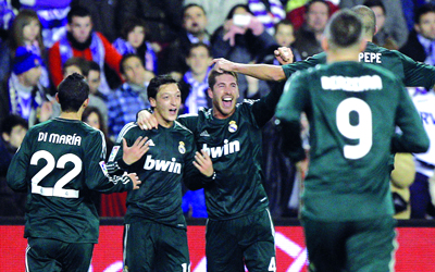 وسجل النجم الألماني الدولي مسعود أوزيل هدفين رائعين قاد بهما ريال مدريد إلى فوز صعب وثمين.
