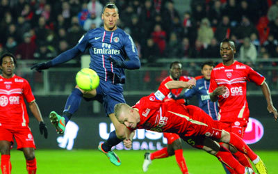 وضع المهاجم الدولي السويدي، زلاتان ابراهيموفيتش، فريقه باريس سان جيرمان على بعد نقطتين من ليون المتصدر بعد ان قاده للفوز على مضيفه القوي فالنسيان 4-صفر، وذلك بتسجيله ثلاثية الثلاثاء على استاد هينو، في افتتاح المرحلة الـ17 من الدوري الفرنسي لكرة القدم.