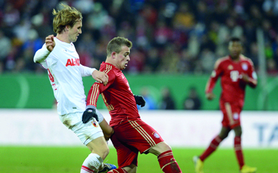 تأهل بايرن ميونيخ متصدر ترتيب الدوري بصعوبة الى الدور ربع النهائي من مسابقة كأس ألمانيا لكرة القدم، اثر فوزه على مضيفه اوغسبورغ الوافد الجديد الى اندية النخبة 2-صفر أول من أمس. ويدين بايرن ميونيخ، وصيف بطل الموسم الماضي، بفوزه الى المهاجمين ماريو غوميز (26) والسويسري شريدان شاكيري (85). ولعب بايرن ميونيخ بتشكيلة شبه مثالية، وخسر جهود مهاجمه الفرنسي فرانك ريبيري في بداية الشوط الثاني بسبب الخشونة (47).