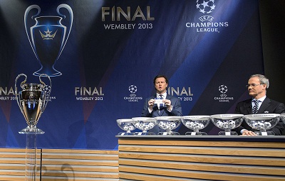 وغاب عن القرعة تشلسي الذي توج باللقب الموسم الماضي وللمرة الاولى في تاريخه بفوزه على بايرن ميونيخ في النهائي، وذلك بعدما فشل في احتلال احد المركزين الاولين في مجموعته لأن يوفنتوس الايطالي وشاختار دانييتسك الاوكراني تفوقا عليه، ومانشستر سيتي حامل لقب الدوري الانكليزي لحلوله اخيرا في مجموعته.
