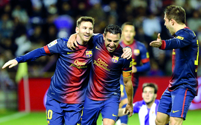 وجاءت المباراة بعد الإعلان الذي صدر عن برشلونة الثلاثاء بانه سيمدد عقد ميسي حتى 2018، وتشافي والقائد المدافع كارليس بويول حتى 2016.