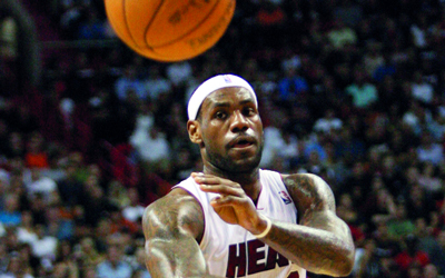 سجّل لوبرون جيمس الملقب بـ«الملك» 36 نقطة ليقود ميامي هيت الى فوز صعب على اورلاندو ماجيك 112-110، بعد التمديد في مباراة ضمن منافسات مجموعة الجنوب الشرقي من الدوري الاميركي في كرة السلة للمحترفين. ونجح جيمس في 11 تمريرة حاسمة، في حين اضاف كريس بوش 22 نقطة، ليضع حدا لخسارتين متتاليتين خارج ملعبه امام ديترويت بيستونز وميلووكي باكس.