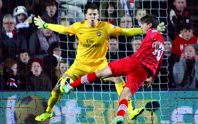 الأوروغوياني راميريز خلال تسجيله هدف ساوثمبتون في شباك أرسنال. أ.ف.ب
