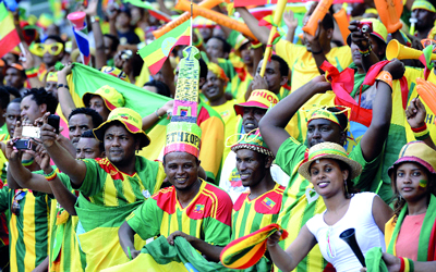 فرحة كبيرة لجماهير إثيوبيا بعد تحقيق نقطة أمام زامبيا. أ.ف.ب