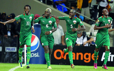 فرحة لاعبي بوركينا فاسو بالفوز على إثيوبيا. رويترز