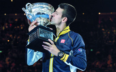 دون الصربي نوفاك ديوكوفيتش المصنف اول اسمه في التاريخ، بعد ان توج بلقب بطولة استراليا المفتوحة، اولى البطولات الاربع الكبرى، للمرة الثالثة على التوالي والرابعة في مسيرته بفوزه البريطاني اندي موراي الثالث 6/7 (2/7) و7/3 (6/3) و6/3 و6/2، أمس، في المباراة النهائية على ملاعب ملبورن.