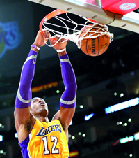 على ملعب «ستايبلس سنتر» وامام 18 ألفاً و997 متفرجاً احتشدوا لمشاهدة فريقهم الذي يقدم أحد أسوأ مواسمه، تمكن ليكرز من تخطي عقبة ضيفه المتواضع نيو اورليانز، ليحقق بالتالي ثلاثة انتصارات متتالية للمرة الأولى منذ خمسة اسابيع. ويدين ليكرز بفوزه الى الثلاثي دوايت هاورد وايرل كارل وكوبي براينت، اذ سجل الأول 24 نقطة والثاني 20 نقطة مع 12 متابعة وأربع تمريرات حاسمة، والثالث 14 نقطة مع 11 تمريرة حاسمة وثماني متابعات في مباراة وصل خلالها الفارق بين اصحاب الأرض وضيوفهم الى 18 نقطة في اخر خمس دقائق ونصف الدقيقة.