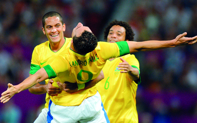 البرازيل يشارك الإنجليز الاحتفال بمرور 150 سنة على تأسيس الاتحاد المحلي. أ.ف.ب