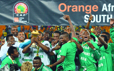 طار النيجيريون فرحاً باللقب الإفريقي الثالث بعد سنوات عجاف، بعد الفوز الثمين على منتخب بوركينا فاسو بهدف نظيف في المباراة النهائية، وتوج «نسور نيجيريا» بالكأس وسط أجواء من البهجة عمت أفراد البعثة المشاركة في الحدث الإفريقي الذي استضافته جنوب إفريقيا.