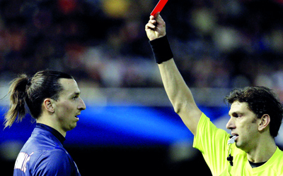 سان جرمان فاز 2/1 في «المستايا» وخسر جهود إبراهيموفيتش بسبب الطرد. أ.ف.ب