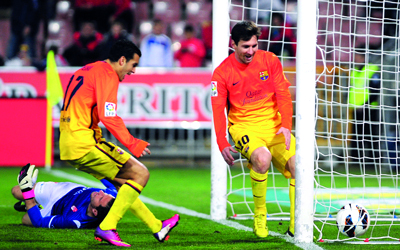 واصل المهاجم الأرجنتيني ليونيل ميسي ممارسة هوايته في هز الشباك وسجل هدفين أنقذ بهما برشلونة من كمين مضيفه غرناطة، وقاده للفوز الثمين 2/1، أول من أمس، في المرحلة الرابعة والعشرين من الدوري الإسباني لكرة القدم.