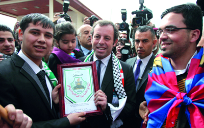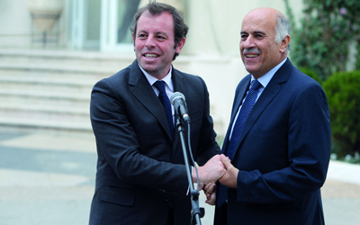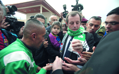 رحب رئيس اتحاد كرة القدم الفلسطيني جبريل الرجوب، بفكرة رئيس نادي برشلونة ساندرو روسيل، بإقامة «مباراة سلام» بين نادي برشلونة وفريق مشترك من لاعبين فلسطينيين وإسرائيليين، إلا انه اعتبرها «حلماً لايزال بعيد التحقيق». وكان رئيس نادي برشلونة، الذي يزور إسرائيل والأراضي الفلسطينية، أعلن أنه يحمل فكرة تقوم على إجراء «مباراة سلام» بين الطرفين في 31 من يونيو المقبل. وطرح روسيل الفكرة على الرئيس الاسرائيلي شمعون بيرس، وعلى الرئيس الفلسطيني محمود عباس، حينما زاره بمقره في رام الله.