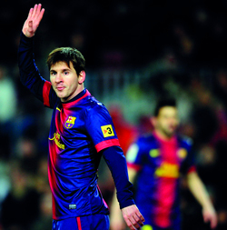 ميسي أحرز 38 هدفاً لبرشلونة في الدوري حتى الآن. أ.ف.ب