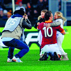 «كانت ليلة مميزة»، هذا ما قاله توتي بعد مباراة أمس الأحد وهو فرح جدا باحتفاله بهذا الانجاز مع عائلته في ارضية الملعب، مضيفا «هل تأثرت جدا عندما دخل ولداي (كريستيان وشانيل) الى ارضية الملعب؟ نعم دون ادنى شك، فوجئت لم اعلم انهما قادمان، عندما رأيتهما يتوجهان نحوي فوجئت تماما، وجودهما معي يعني الكثير لي، معانقتي كريستيان وشانيل تعني كل شيء بالنسبة لي، هذا امر سأتذكره دائما».